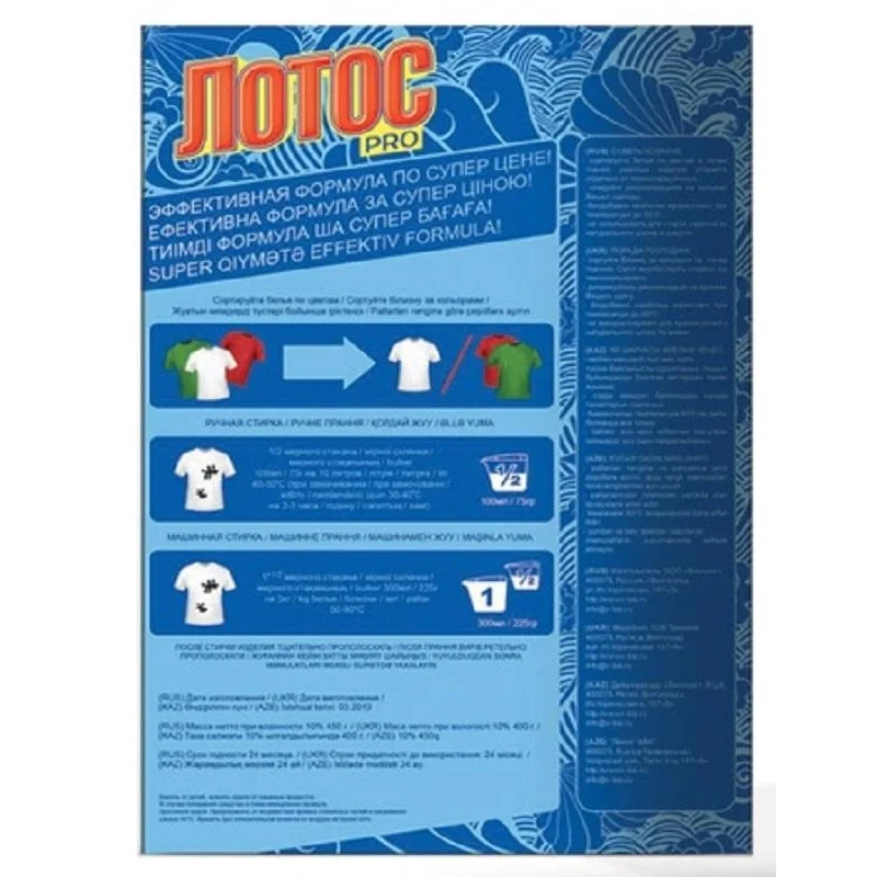 Стиральный порошок для ручной стирки 450 г, ЛОТОС PRO 'Морская свежесть'