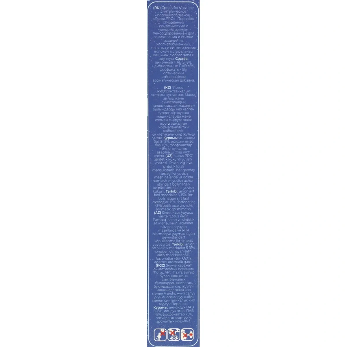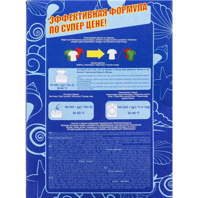 Назначение: стиральный порошок синтетический с ненормированным пенообразованием. Предназначен для замачивания и ручной стирки изделий из хлопчатобумажных, льняных и синтетических волокон.