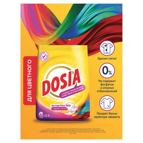 Стиральный порошок для всех типов стирки и тканей 2,5 кг, DOSIA 'Optima Color', 3280105