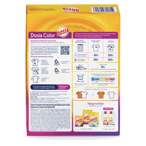 Стиральный порошок для всех типов стирки и тканей 400 г, DOSIA 'Optima Color', 3265602
