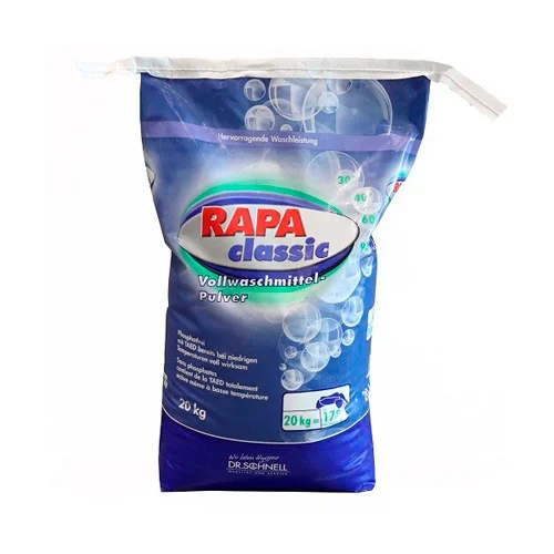 Rapa Classic гарантирует исключительную чистоту и уход за бельем при любой температуре. Для для использования во всех коммерческих и бытовых стиральных машинах до 25 кг. Для белого и смешанного белья и смешанного белья при любой жесткости воды и степени загрязнения. Добейтесь превосходных результатов очистки независимо от независимо от типа белья и стиральной машины с помощью правильной дозировки стирального порошка для количества белья, правильной установки температуры/программы.