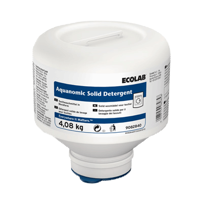 Aquanomic Solid Detergent – твердое моющее средство для стирки белья, производства Эколаб. Рекомендуем применять в профессиональных стиральных машинах с использованием специального настраиваемого дозирующего оборудования Акваномик (Aquanomic).