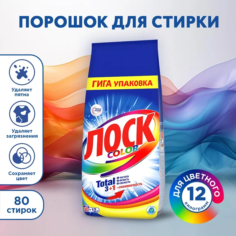Стиральный порошок Лоск Колор для цветного 80 стирок, 12кг