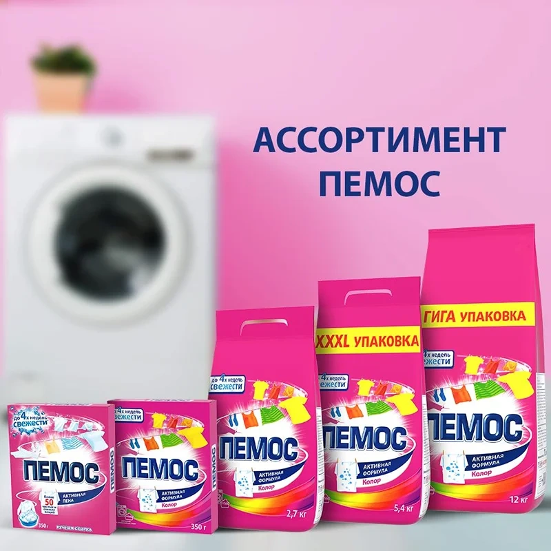 Пемос Активная Пена - стиральный порошок с эффективной формулой, которая отлично отстирывает различные загрязнения. Проникая между волокнами ткани, Пемос Активная Пена растворяет и удаляет пятна.