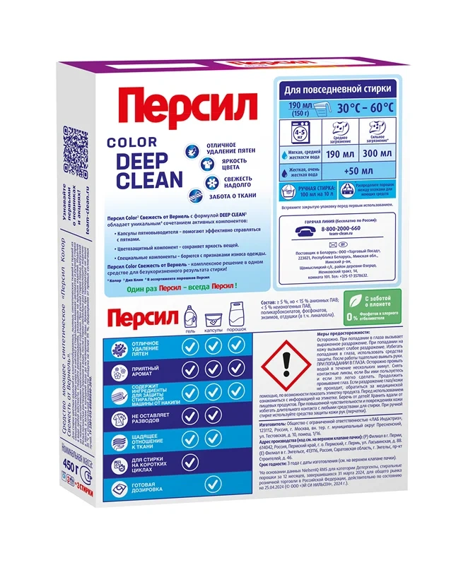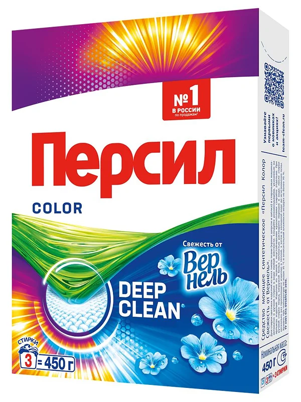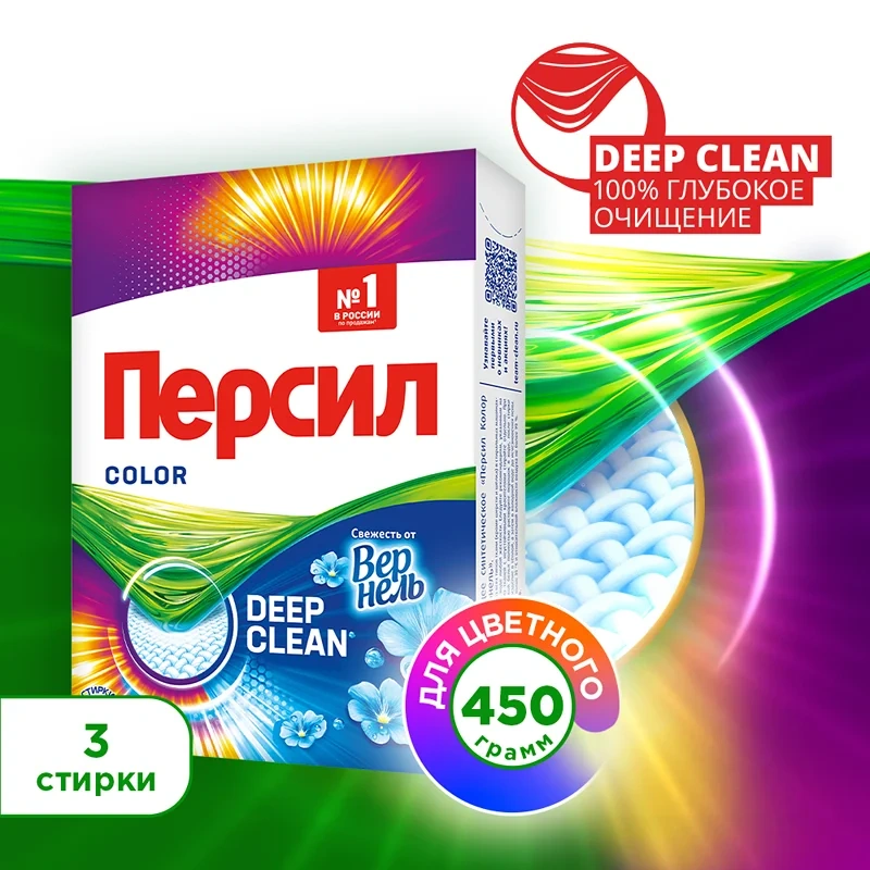 Стиральный порошок Персил Колор Свежесть от Вернель для цветного белья 3 стирки, 450г