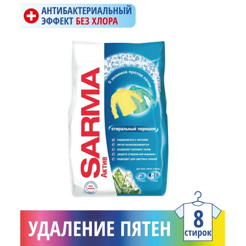 Стиральный порошок Sarma Актив ландыш 800г, автомат