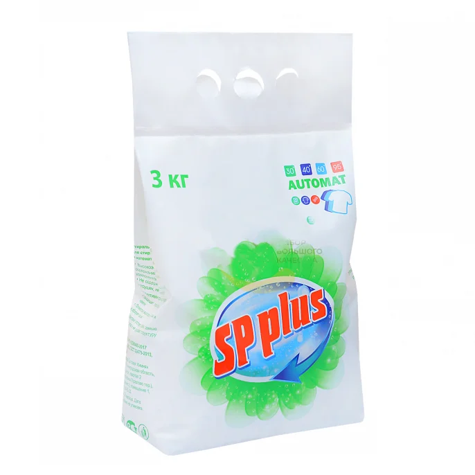 SP plus Автомат для использования в стиральных машинах любого типа. Стиральный порошок предназначен для стирки изделий из хлопчатобумажных, льняных, синтетических тканей, а так же тканей из смешанных волокон. Не подходит для стирки изделий из шерсти и шелка.
