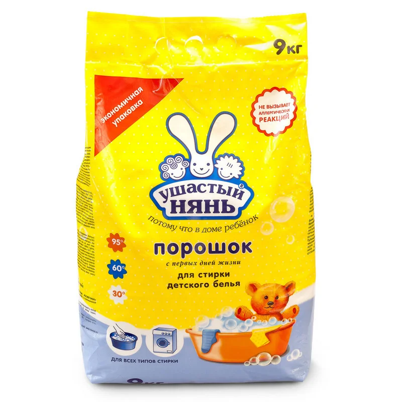 Стиральный порошок Ушастый Нянь 9кг, детский