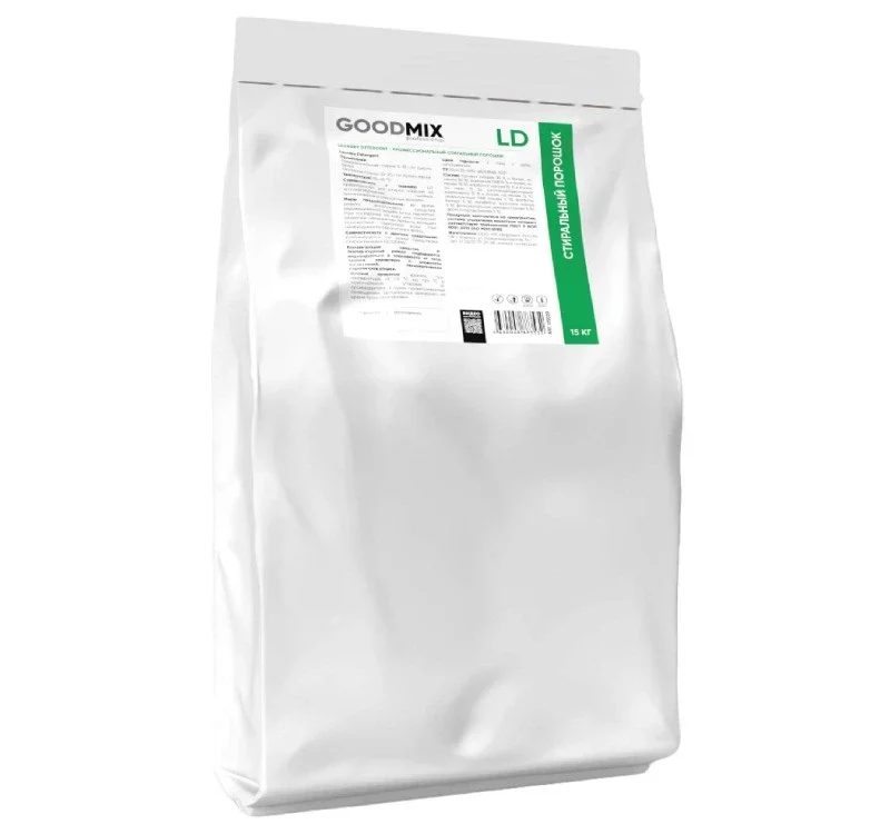 Goodmix LD - профессиональный стиральный порошок. Предназначен для предварительной и основной машинной стирки белых и цветных изделий из хлопчатобумажных, льняных, синтетических и смешанных волокон. Благодаря оптимизированной формуле средство эффективно справляется с различными видами загрязнений. Средство применимо для ручной и автоматизированной стирки. Не оставляет разводов и обладает приятным ароматом.