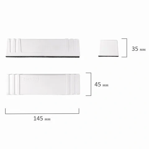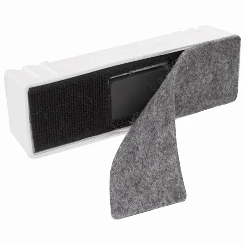 Выполнен из прочного пластика белого цвета, имеет стильный эргономичный дизайн. Обладает высоким качеством стирания. Стиратель прямоугольной формы со встроенным магнитом отлично крепится к любой магнитно-маркерной доске, что позволяет расположить его в любом месте рабочей поверхности доски. Сменные двусторонние вкладыши из фетра крепятся на липучки. Размер - 45х145 мм.