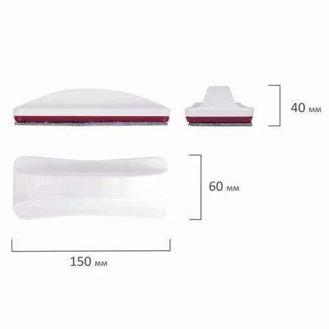 Выполнен из прочного пластика белого цвета, имеет стильный эргономичный дизайн. Стиратель прямоугольной формы со встроенным магнитом отлично крепится к любой магнитно-маркерной доске, что позволяет расположить его в любом месте рабочей поверхности доски. Сменные двусторонние вкладыши из фетра обладают мягкой износостойкой поверхностью и крепятся к корпусу стирателя на липучки. Размер - 65х150 мм. Упакован в картонню упаковку.