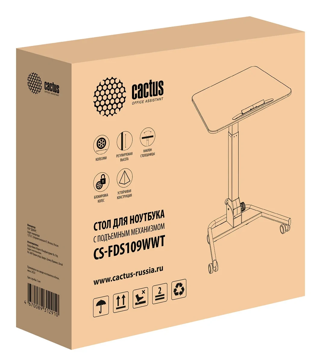 Стол для ноутбука Cactus VM-FDS109 73x50x108см, белый, столешница МДФ