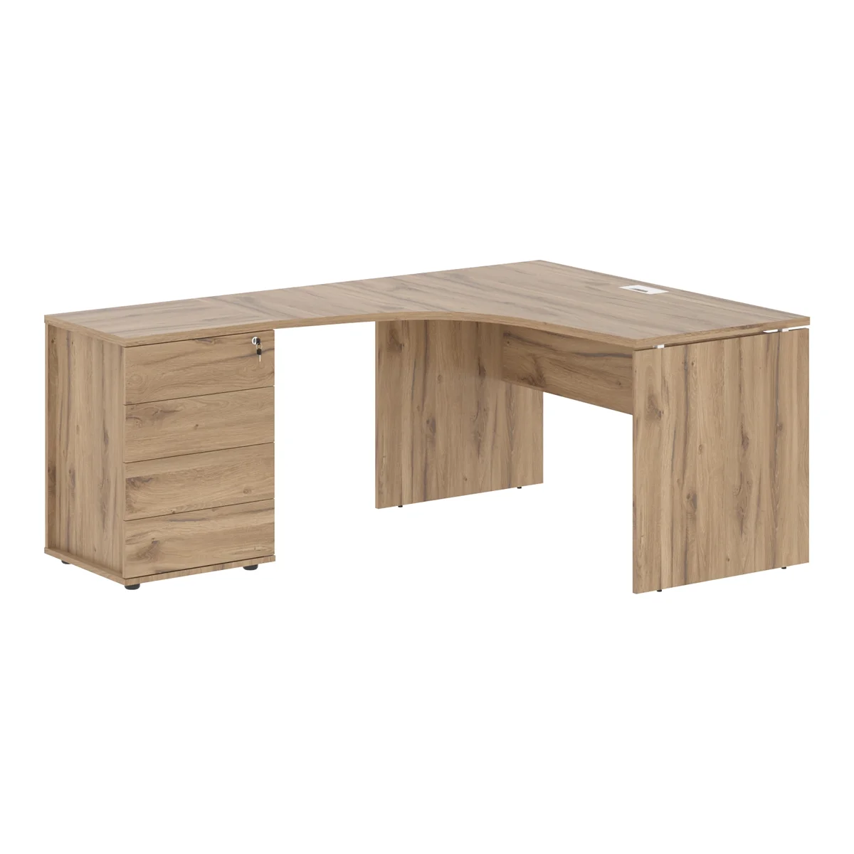 Стол эргономичный с тумбой EDCET 1318(L) Дуб Денвер светлый/Белый 1360х1880х750 EDIS