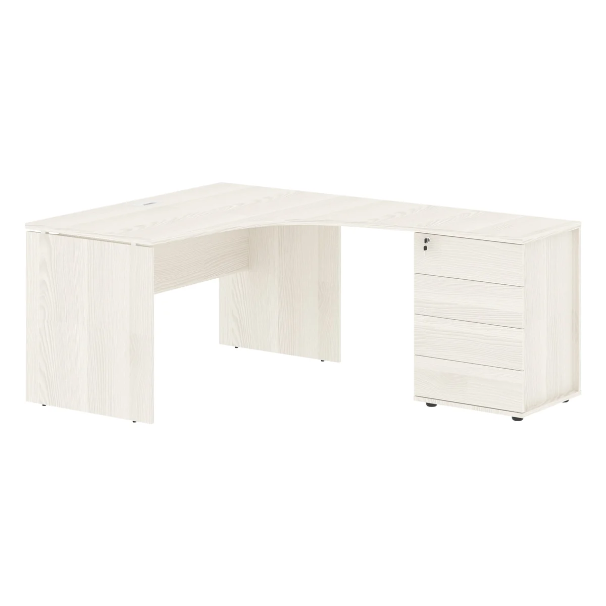 Стол эргономичный с тумбой EDCET 1318(R) Ясень Траун/Белый 1360х1880х750 EDIS