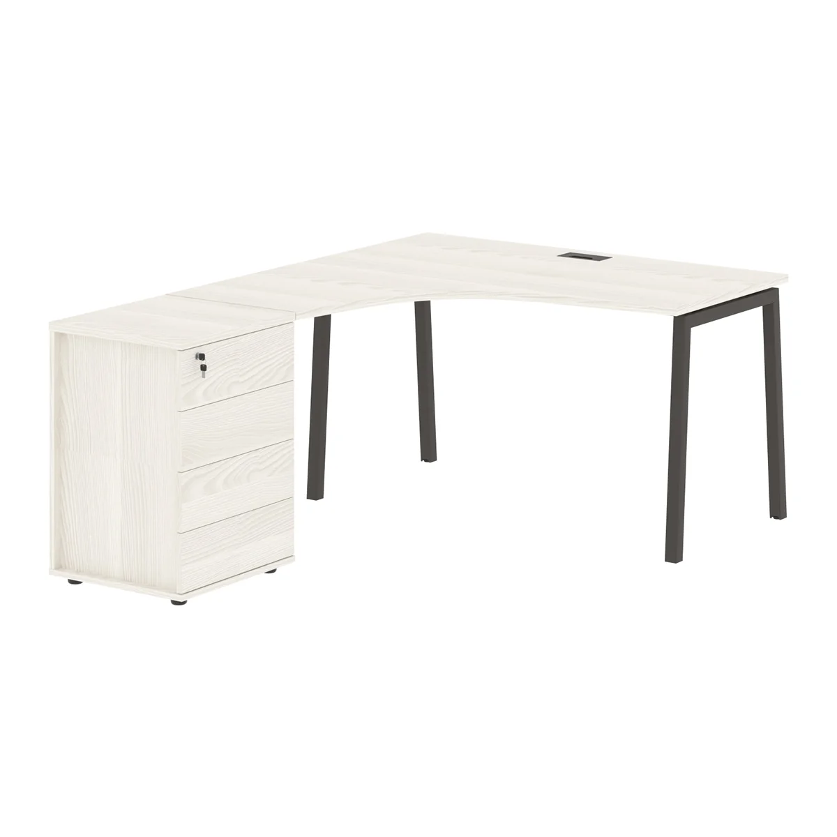 Стол эргономичный с тумбой ELCET 1318(L) Ясень Траун/Мокко 1360х1880х750 EDIS