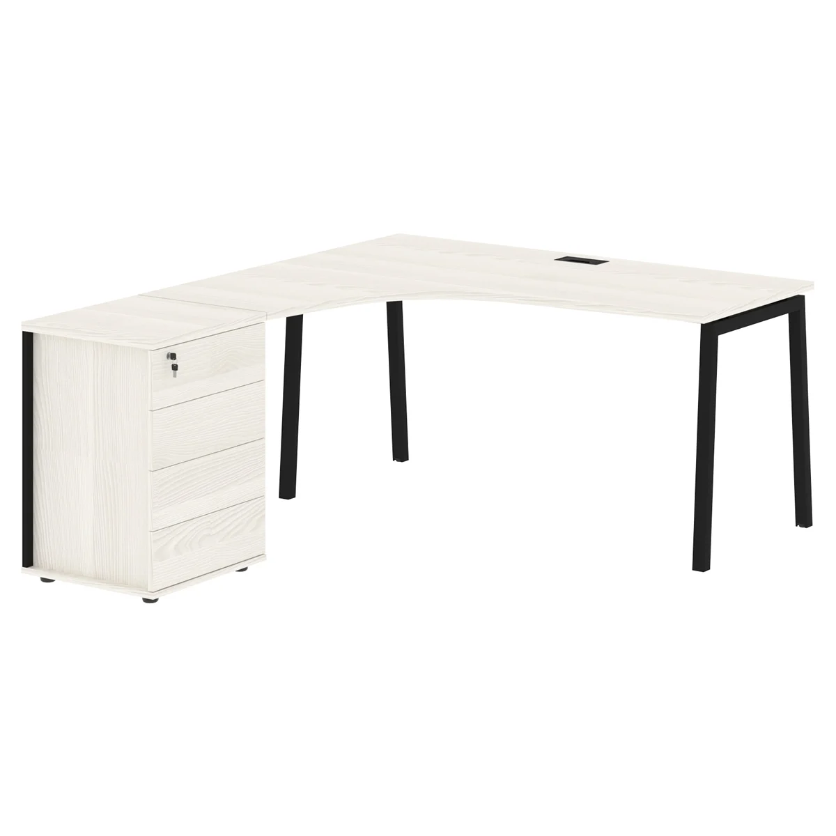 Стол эргономичный с тумбой ELCET 1518(L) Ясень Траун/Черный 1560х1880х750 EDIS