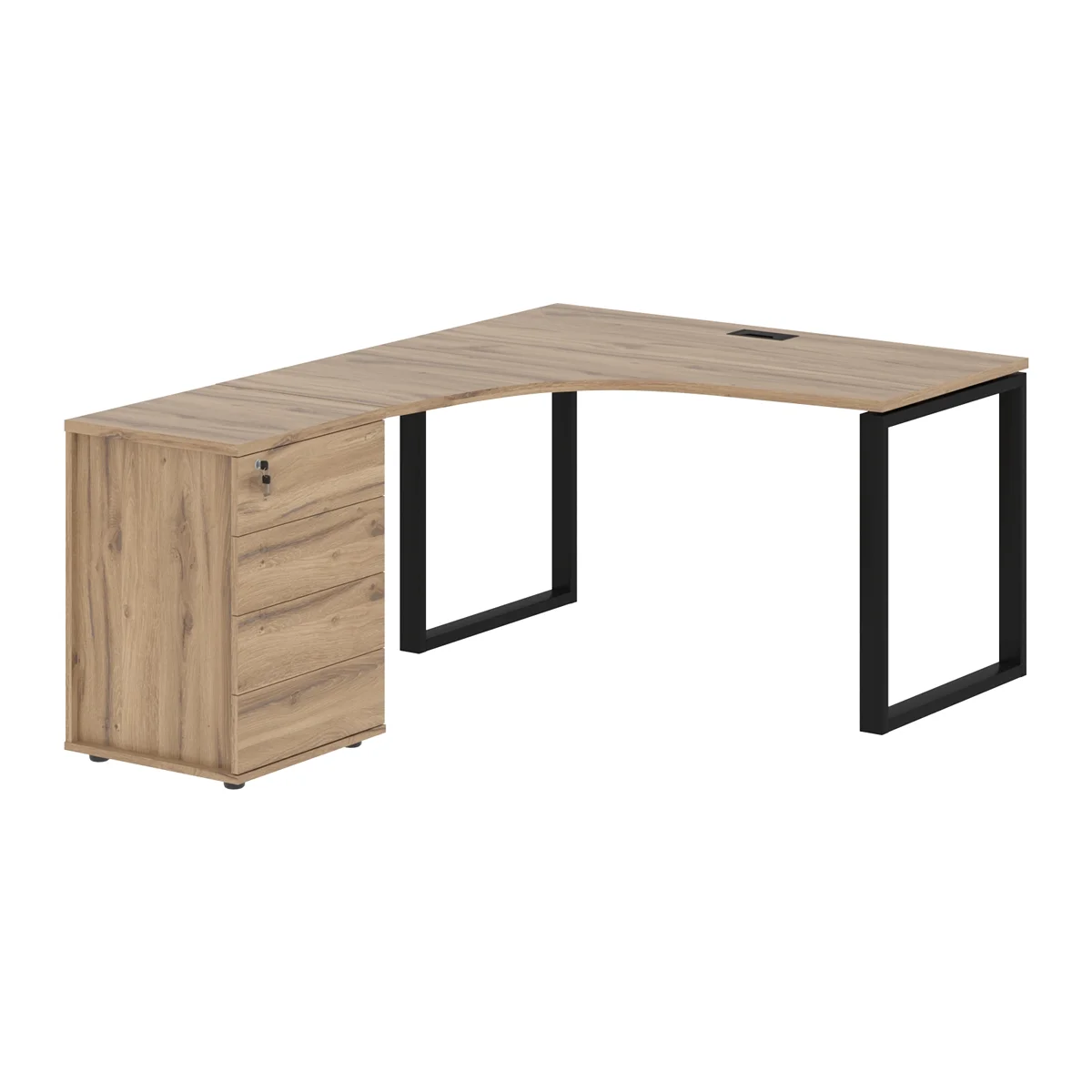 Стол эргономичный с тумбой EQCET 1318(L) Дуб Денвер светлый/Черный 1360х1880х750 EDIS
