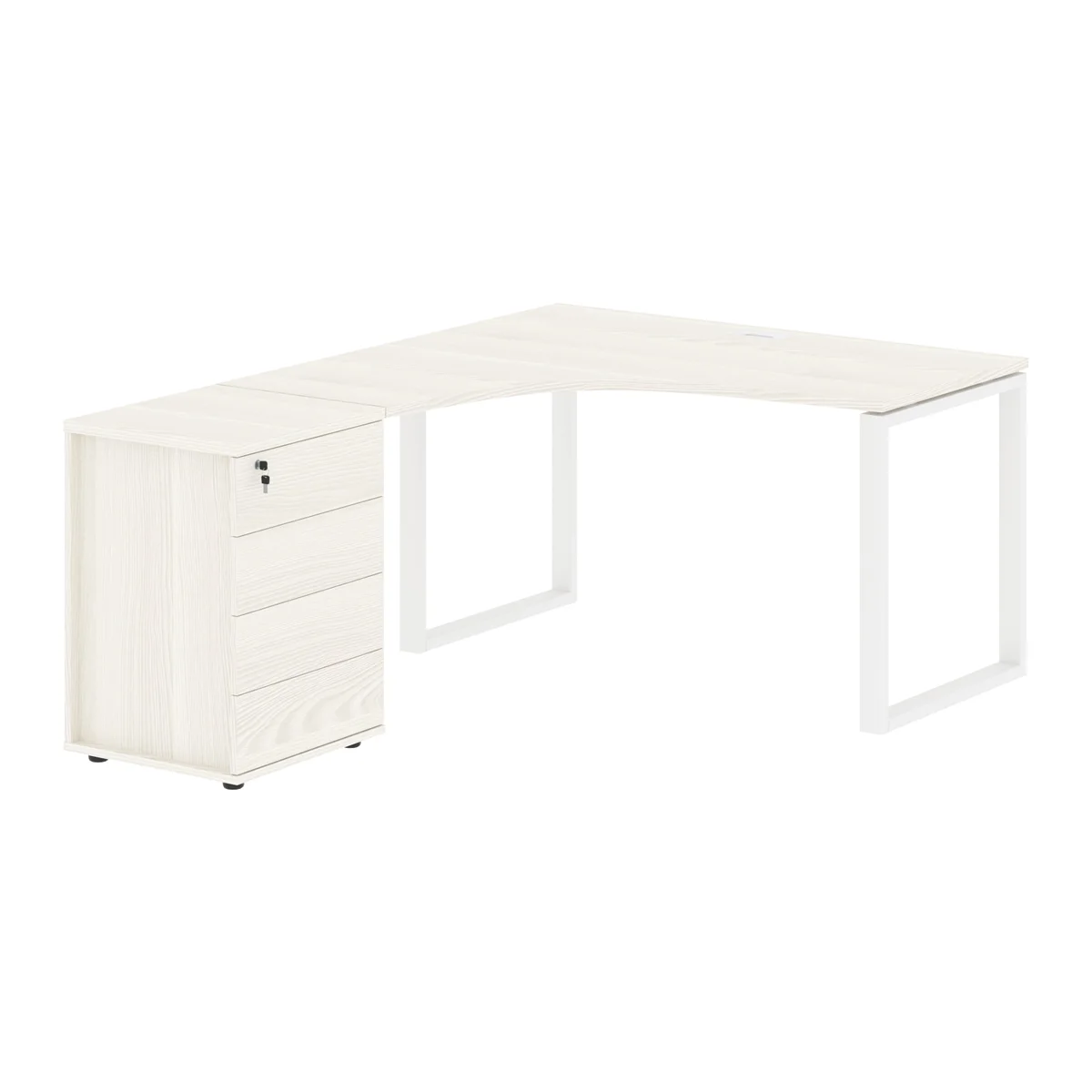 Стол эргономичный с тумбой EQCET 1318(L) Ясень Траун/Белый 1360х1880х750 EDIS