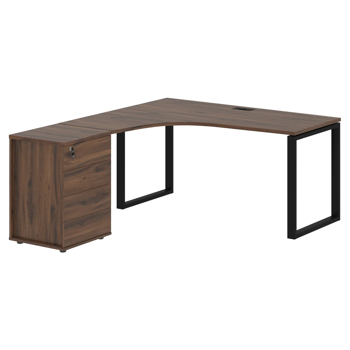 Стол эргономичный с тумбой EQCET 1518(L) Дуб Денвер тёмный/Черный 1560х1880х750 EDIS