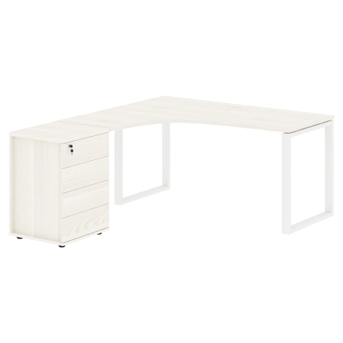 Стол эргономичный с тумбой EQCET 1518(L) Ясень Траун/Белый 1560х1880х750 EDIS
