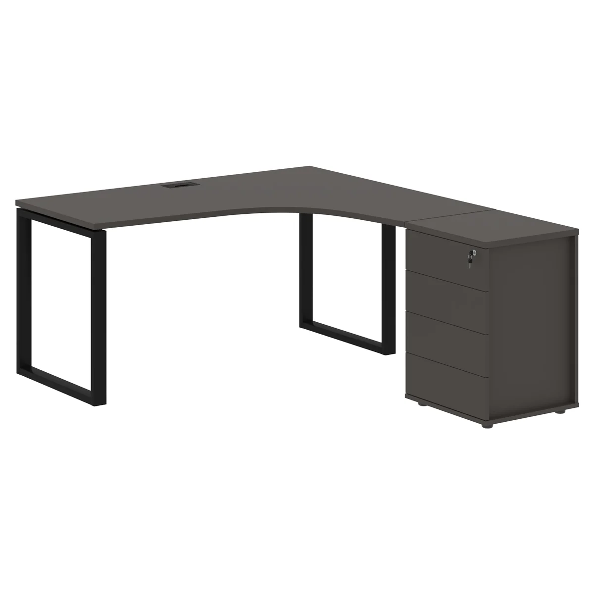 Стол эргономичный с тумбой EQCET 1518(R) Мокко/Черный 1560х1880х750 EDIS