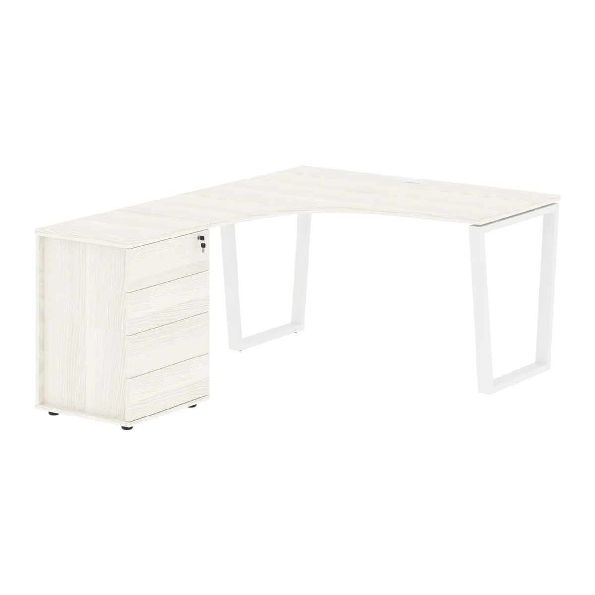 Стол эргономичный с тумбой EVCET 1318(L) Ясень Траун/Белый 1360х1880х750 EDIS