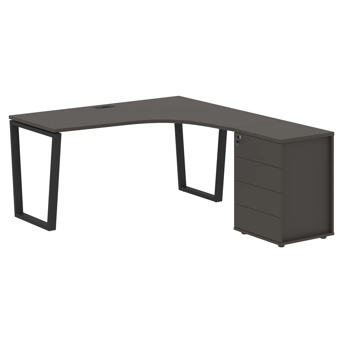 Стол эргономичный с тумбой EVCET 1518(R) Мокко/Черный 1560х1880х750 EDIS
