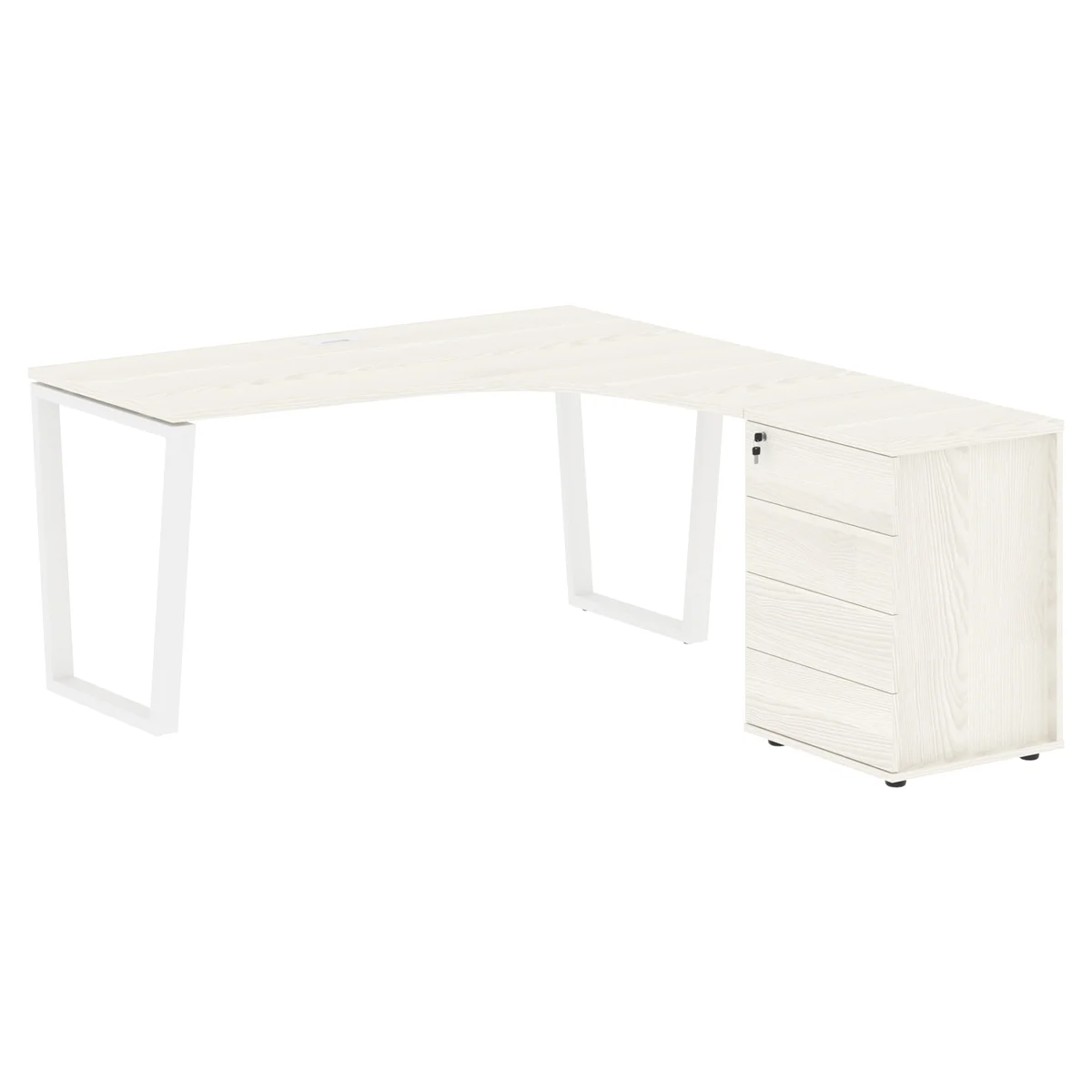 Стол эргономичный с тумбой EVCET 1518(R) Ясень Траун/Белый 1560х1880х750 EDIS