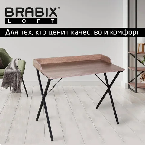 Стол компьютерный Brabix LOFT CD-008 морёный дуб, 900х500х780мм, на металлокаркасе