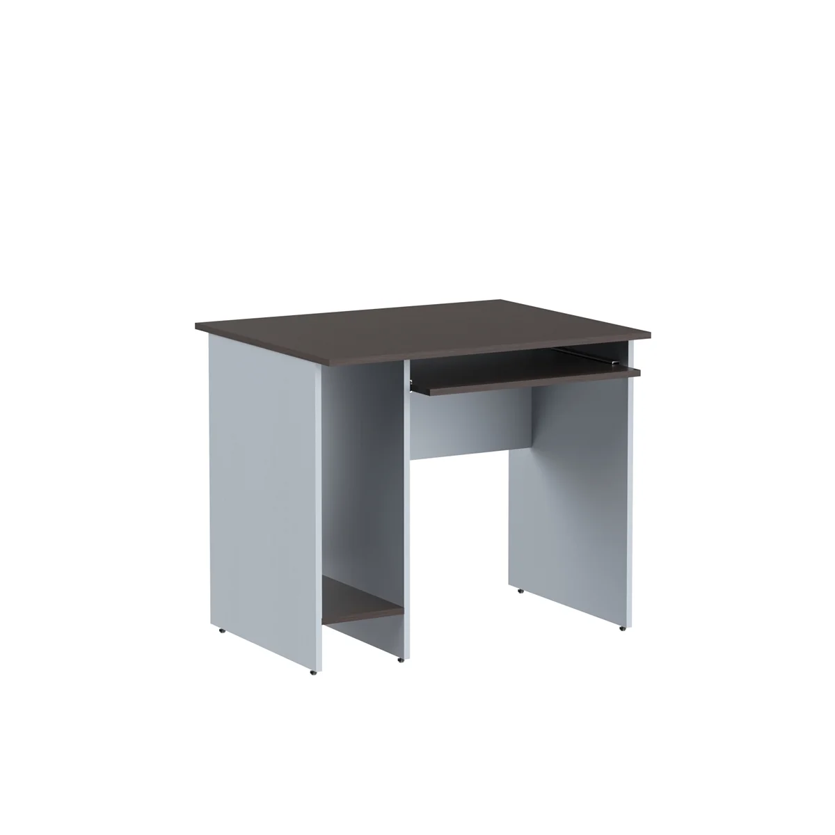 Компьютерный рабочий стол IMAGO, предназначенный для офисных или домашних рабочих зон, размер – 900x720x755 мм, комбинированный цвет - Венге Магия/Металлик. Оснащен выдвижной полкой под клавиатуру и отсеком для системного блока. Солидная и прочная столешница 22 мм, надежная защита торцевых поверхностей – кромка ПВХ 2 мм, возможность регулировки по высоте для неровных полов.
