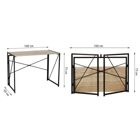 Стол на металлокаркасе BRABIX 'LOFT CD-002', 1000х500х750 мм, складной, цвет дуб натуральный, 641214