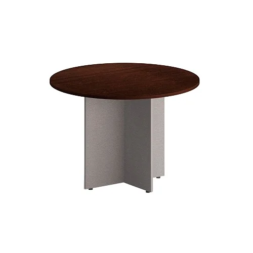 Круглый стол для переговоров IMAGO, подходящий для конференц-зала или личного рабочего кабинета, диаметр - 1100 мм, комбинированный цвет - Венге Магия/Металлик. Солидная и прочная столешница 22 мм, надежная защита торцевых поверхностей – кромка ПВХ 2 мм, возможность регулировки по высоте для неровных полов.