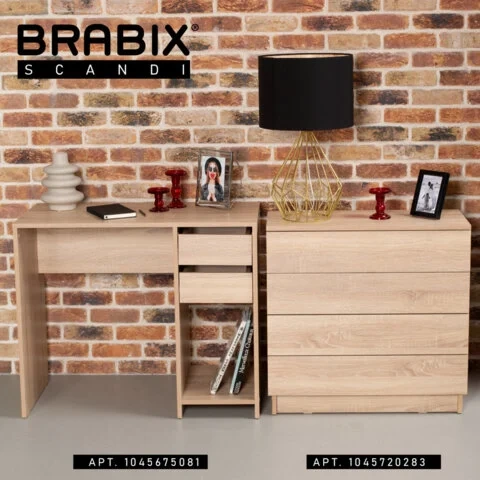 Стол прямой Brabix Scandi CD-017 дуб сонома, 900х450х750мм, 2 ящика