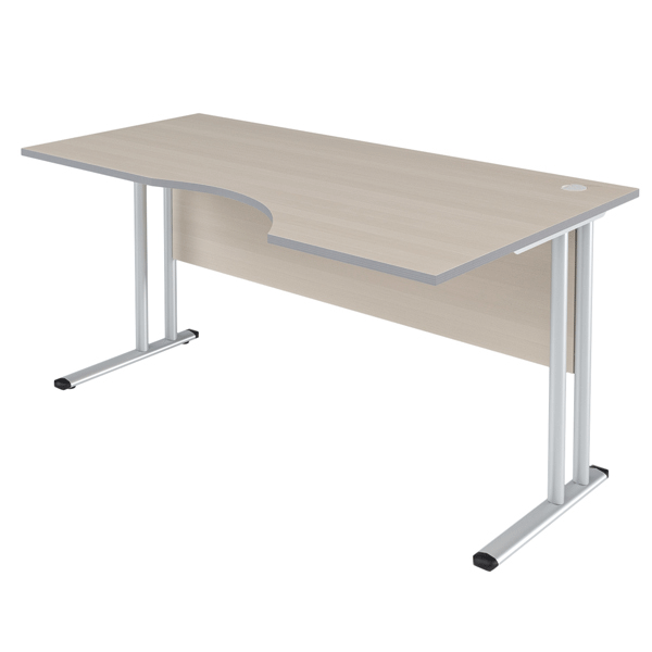 Большой эргономичный стол IMAGO-M для офисного или домашнего использования, размер - 1600х900х747 мм, тип – правосторонний, цвет – Клен, цвет опор – Алюминий Матовый. Солидная и прочная столешница 22 мм, надежная защита торцов всех элементов - кромка ПВХ 2 мм, регулировка по высоте для неровных полов.