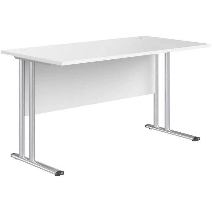 Универсальный рабочий стол IMAGO-M для офисного или домашнего использования, увеличенной глубины, размер - 1400х720х747 мм, цвет – Белый, цвет опор – Алюминий Матовый. Солидная и прочная столешница 22 мм, надежная защита торцов всех элементов - кромка ПВХ 2 мм, регулировка по высоте для неровных полов.