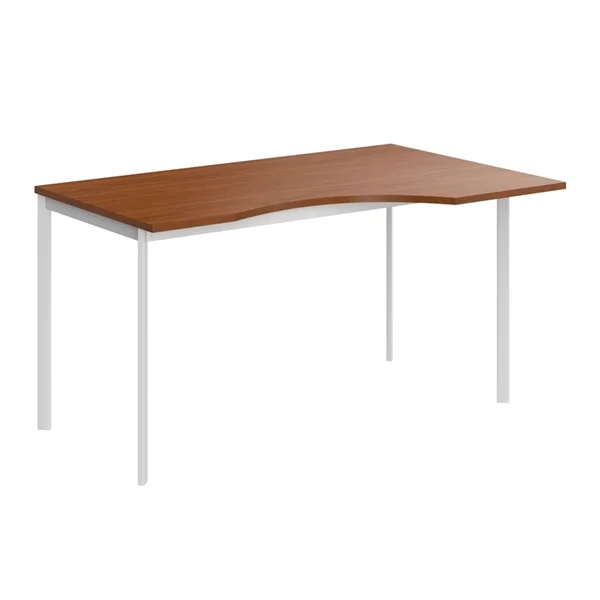 Универсальный эргономичный стол IMAGO-S для офисного или домашнего использования, размер - 1400х900х755 мм, тип – правосторонний, цвет – Орех Французский, цвет опор – Белый. Оснащен устойчивым и долговечным П-образным металлокаркасом типа «Бенч». Солидная и прочная столешница 22 мм, надежная защита торцов всех элементов - кромка ПВХ 2 мм, регулировка по высоте для неровных полов.