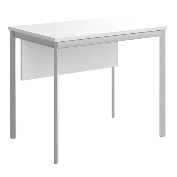Компактный рабочий стол IMAGO-S для офисного или домашнего использования, размер - 900х600х755 мм, цвет – Белый, цвет опор – Алюминий Матовый. Оснащен устойчивым и долговечным П-образным металлокаркасом типа «Бенч». Стол комплектуется декоративной фронтальной панелью (царгой). Солидная и прочная столешница 22 мм, надежная защита торцов всех элементов - кромка ПВХ 2 мм, регулировка по высоте для неровных полов.