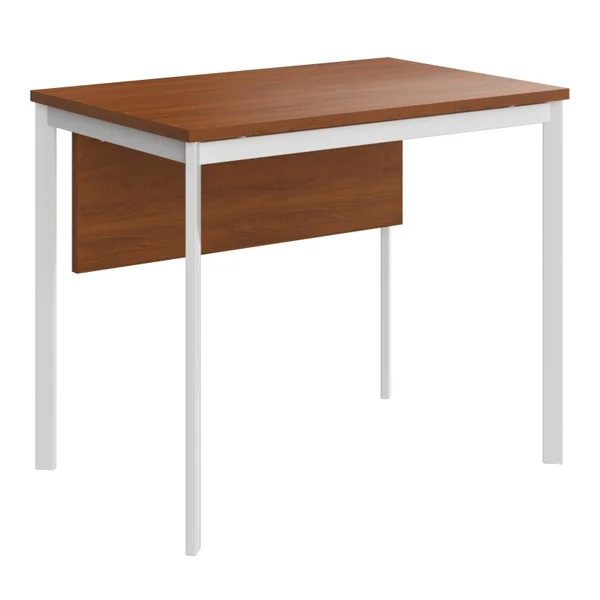 Компактный рабочий стол IMAGO-S для офисного или домашнего использования, размер - 900х600х755 мм, цвет – Орех Французский, цвет опор – Белый. Оснащен устойчивым и долговечным П-образным металлокаркасом типа «Бенч». Стол комплектуется декоративной фронтальной панелью (царгой). Солидная и прочная столешница 22 мм, надежная защита торцов всех элементов - кромка ПВХ 2 мм, регулировка по высоте для неровных полов.