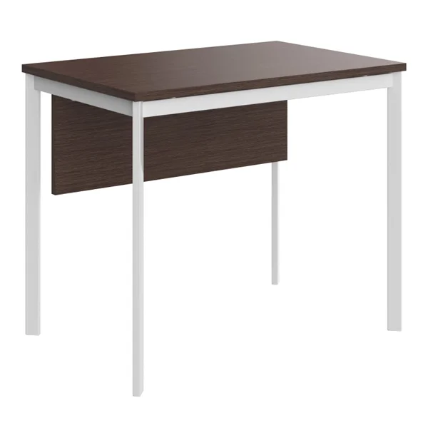 Компактный рабочий стол IMAGO-S для офисного или домашнего использования, размер - 900х600х755 мм, цвет – Венге Магия, цвет опор – Белый. Оснащен устойчивым и долговечным П-образным металлокаркасом типа «Бенч». Стол комплектуется декоративной фронтальной панелью (царгой). Солидная и прочная столешница 22 мм, надежная защита торцов всех элементов - кромка ПВХ 2 мм, регулировка по высоте для неровных полов.