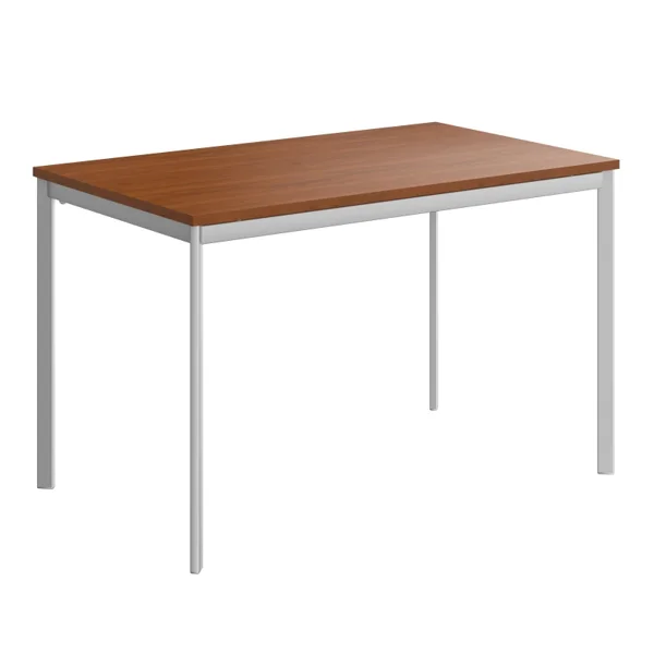 Универсальный рабочий стол IMAGO-S для офисного или домашнего использования, размер - 1200х720х755 мм, цвет – Орех Французский, цвет опор – Алюминий Матовый. Оснащен устойчивым и долговечным П-образным металлокаркасом типа «Бенч». Солидная и прочная столешница 22 мм, надежная защита торцов всех элементов - кромка ПВХ 2 мм, регулировка по высоте для неровных полов.