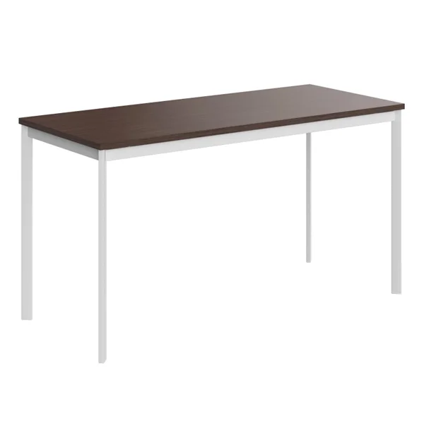 Универсальный рабочий стол IMAGO-S для офисного или домашнего использования, размер - 1400х600х755 мм, цвет – Венге Магия, цвет опор – Белый. Оснащен устойчивым и долговечным П-образным металлокаркасом типа «Бенч». Солидная и прочная столешница 22 мм, надежная защита торцов всех элементов - кромка ПВХ 2 мм, регулировка по высоте для неровных полов.
