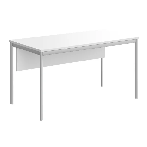 Универсальный рабочий стол IMAGO-S для офисного или домашнего использования, размер - 1400х720х755 мм, цвет – Белый, цвет опор – Алюминий Матовый. Оснащен устойчивым и долговечным П-образным металлокаркасом типа «Бенч». Стол комплектуется декоративной фронтальной панелью (царгой). Солидная и прочная столешница 22 мм, надежная защита торцов всех элементов - кромка ПВХ 2 мм, регулировка по высоте для неровных полов.