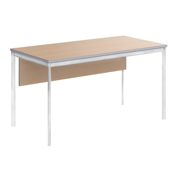 Универсальный рабочий стол IMAGO-S для офисного или домашнего использования, размер - 1400х720х755 мм, цвет – Клен, цвет опор – Белый. Оснащен устойчивым и долговечным П-образным металлокаркасом типа «Бенч». Стол комплектуется декоративной фронтальной панелью (царгой). Солидная и прочная столешница 22 мм, надежная защита торцов всех элементов - кромка ПВХ 2 мм, регулировка по высоте для неровных полов.