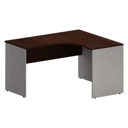 Эргономичный угловой рабочий стол IMAGO, идеально вписывающийся в офисные и домашние рабочие зоны, размер –1400x1200x755 мм, тип - правосторонний; комбинированный цвет - Венге Магия/Металлик. Солидная и прочная столешница 22 мм, надежная защита торцевых поверхностей – кромка ПВХ 2 мм, возможность регулировки по высоте для неровных полов.