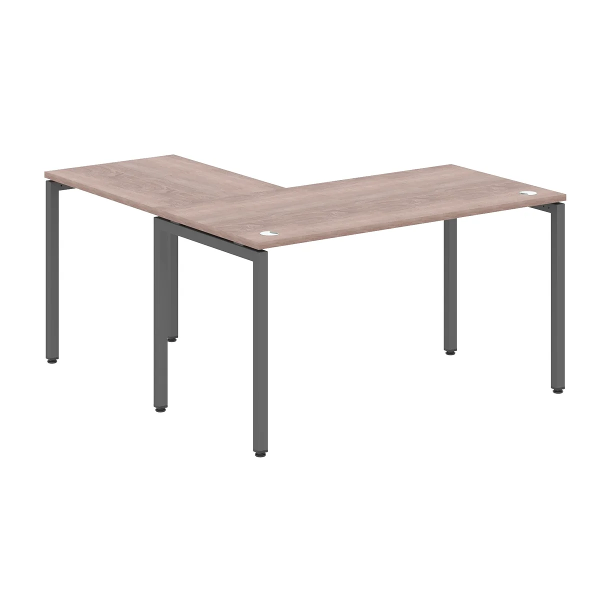 Угловой стол XTEN-S для офисного или домашнего использования, размер – 1400х1500х750 мм, цвет – Дуб Сонома, цвет опор – Антрацит. Рабочая поверхность увеличена благодаря расширителю, который прочно крепиться к столу металлической траверсой, что придает композиции максимальную надежность. Стол оснащен устойчивым и долговечным металлокаркасом типа BENCH из двух П-образных опор. Металлокаркас имеет специальные проставки между столешницей и опорами, что создает эффект «парящей столешницы». Солидная и прочная столешница 25 мм. Надежная защита торцов всех элементов - кромка ПВХ 2 мм. Регулируемые опоры обеспечат столу устойчивость на неровном полу.
