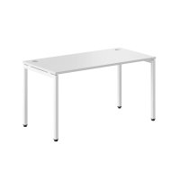 Универсальный рабочий стол XTEN-S для офисного или домашнего использования, размер – 1400х700х750 мм, цвет – Белый, цвет опор – Белый. Оснащен устойчивым и долговечным металлокаркасом типа BENCH из двух П-образных опор, которые прочно соединены между собой металлической траверсой. Металлокаркас имеет специальные проставки между столешницей и опорами, что создает эффект «парящей столешницы». Солидная и прочная столешница 25 мм. Надежная защита торцов всех элементов - кромка ПВХ 2 мм. Регулируемые опоры обеспечат столу устойчивость на неровном полу.