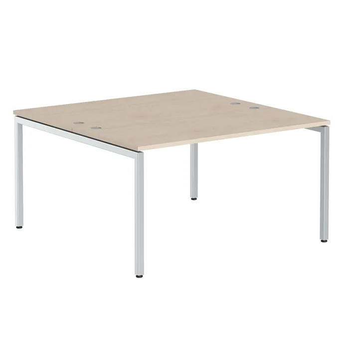 Рабочая станция XTEN-S на 2 рабочих места, размер - 1400х1400х750 мм, цвет – Бук Тиара, цвет опор – Алюминий Матовый. Оснащена устойчивым и долговечным металлокаркасом типа BENCH из двух П-образных опор, которые прочно соединены между собой металлической траверсой. Металлокаркас имеет специальные проставки между столешницей и опорами, что создает эффект «парящей столешницы». Солидная и прочная столешница 25 мм. Надежная защита торцов всех элементов - кромка ПВХ 2 мм. Регулируемые опоры обеспечат столу устойчивость на неровном полу.
