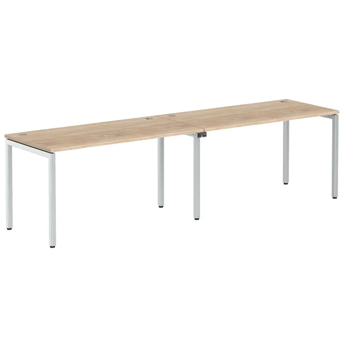 Рабочая станция XTEN-S на 2 рабочих места, размер - 2800х700х750 мм, цвет – Дуб Сонома, цвет опор – Алюминий Матовый. Оснащена устойчивым и долговечным металлокаркасом типа BENCH из двух П-образных опор, которые прочно соединены между собой металлической траверсой. Металлокаркас имеет специальные проставки между столешницей и опорами, что создает эффект «парящей столешницы». Солидная и прочная столешница 25 мм. Надежная защита торцов всех элементов - кромка ПВХ 2 мм. Регулируемые опоры обеспечат столу устойчивость на неровном полу.