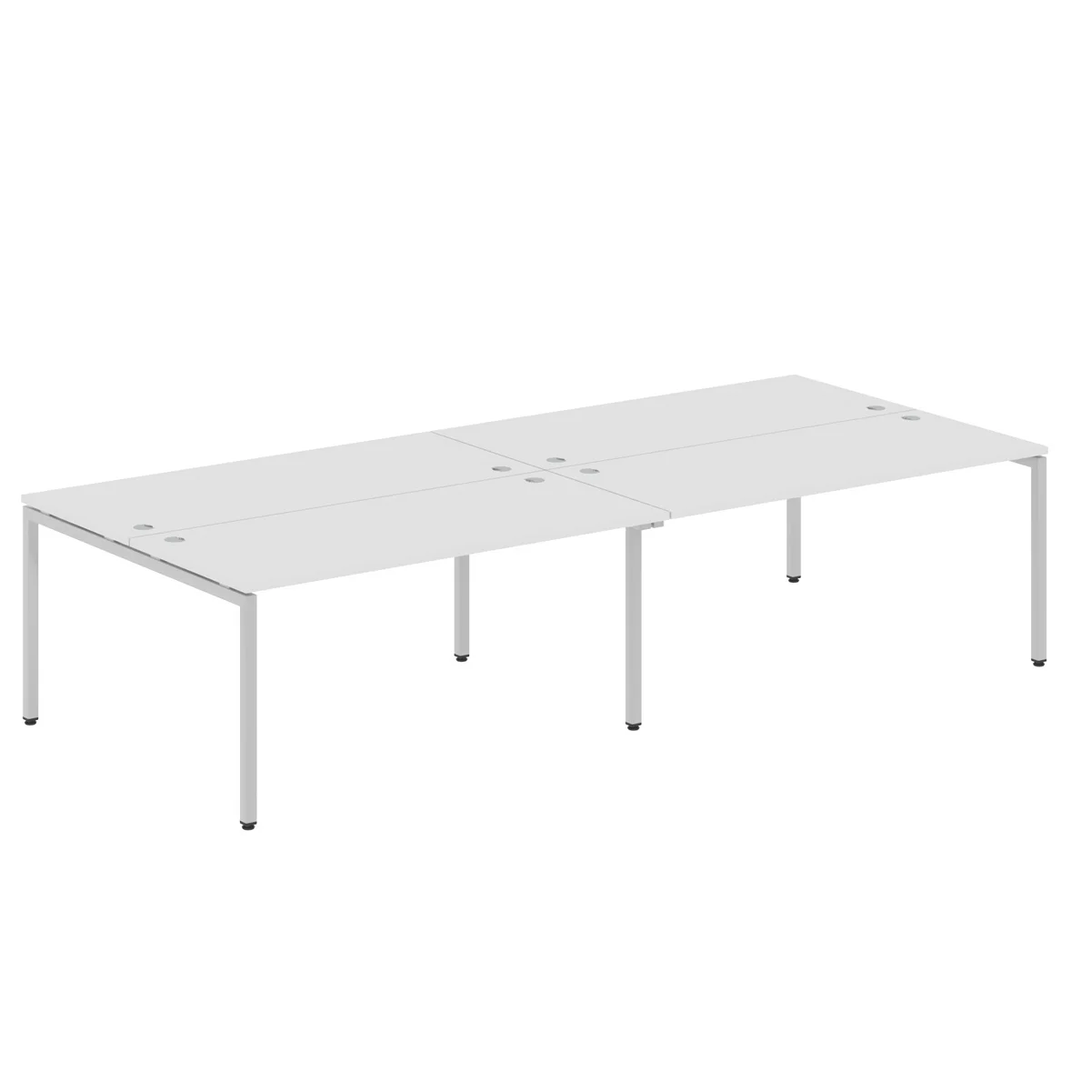 Рабочая станция XTEN-S на 2 рабочих места, размер - 3200х1400х750 мм, цвет – Белый, цвет опор – Алюминий Матовый. Оснащена устойчивым и долговечным металлокаркасом типа BENCH из двух П-образных опор, которые прочно соединены между собой металлической траверсой. Металлокаркас имеет специальные проставки между столешницей и опорами, что создает эффект «парящей столешницы». Солидная и прочная столешница 25 мм. Надежная защита торцов всех элементов - кромка ПВХ 2 мм. Регулируемые опоры обеспечат столу устойчивость на неровном полу.