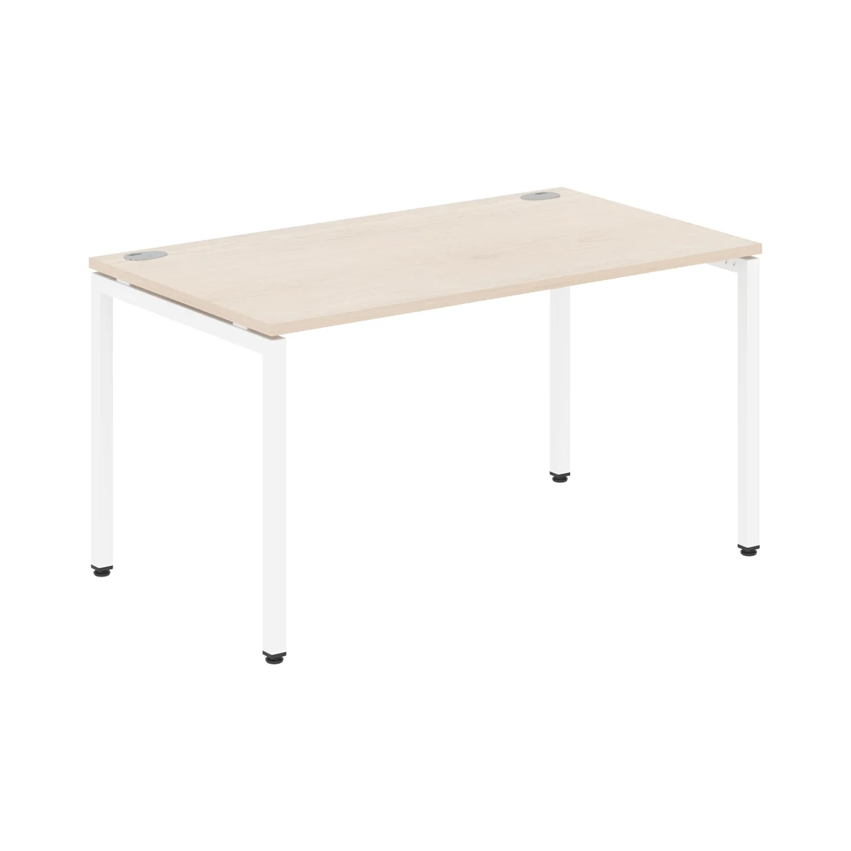 Универсальный рабочий стол XTEN-S для офисного или домашнего использования, размер – 1400х800х750 мм, цвет – Бук Тиара, цвет опор – Белый. Оснащен устойчивым и долговечным металлокаркасом типа BENCH из двух П-образных опор, которые прочно соединены между собой металлической траверсой. Металлокаркас имеет специальные проставки между столешницей и опорами, что создает эффект «парящей столешницы». Солидная и прочная столешница 25 мм. Надежная защита торцов всех элементов - кромка ПВХ 2 мм. Регулируемые опоры обеспечат столу устойчивость на неровном полу.